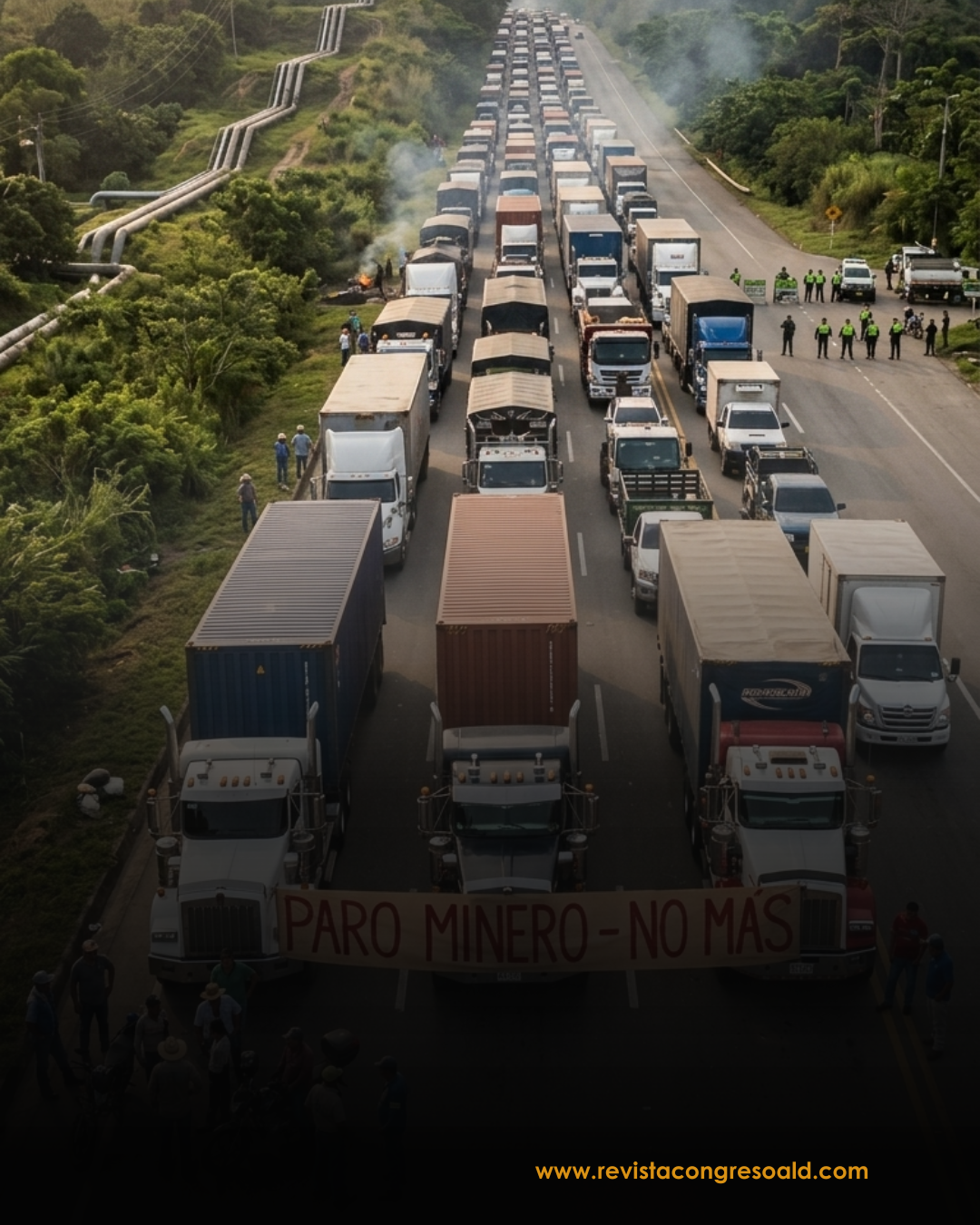 El progreso del Paro Minero durante las primeras horas de hoy confirma la parálisis de la principal arteria vial que comunica al interior del país con el norte. En Caucasia, el progreso de la tensión obligó a la implementación de restricciones de parrillero hombre en moto para prevenir ataques rápidos. Aunque los líderes del Paro Minero han asegurado que permitirán «corredores humanitarios» de paso intermitente, el progreso de las filas de camiones y autobuses de pasajeros ya supera los varios kilómetros. Por su parte, el Ministerio de Defensa ha reiterado que el propósito del Estado es no ceder ante la «extorsión de los bloqueos» y que continuarán persiguiendo las finanzas de la minería ilegal que, según inteligencia, busca «contaminar» la protesta legítima.